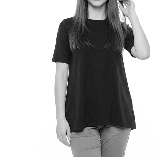 Samarreta bàsica Bufau, amb forma menys acampanada i la màniga una mica més cenyida i llarga que altres models de la nostra casa.