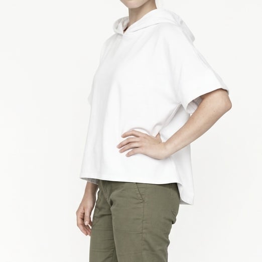 Samarreta de felpa prima de cotó (95%) de color blanc, de patró ample i baix fins a meluc. Talla única (38-44).